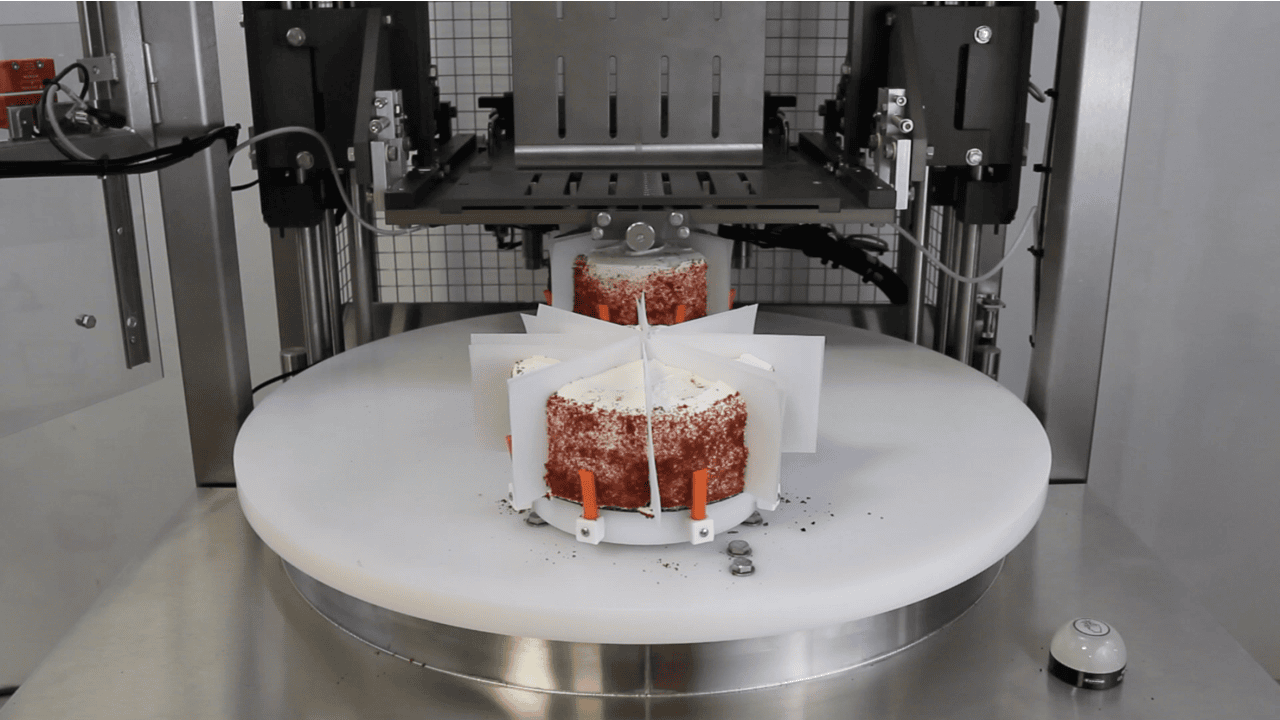 Dieser automatische Kuchenschneider portioniert eine Vielzahl gefrorener runder Produkte, darunter Käsekuchen, Schichtkuchen, Eiscremetorten, Torten und mehr. Die benutzerfreundliche Bedienung erfordert keine besonderen Kenntnisse, um Portionen mit gleichbleibender Größe und gleichbleibendem Gewicht bei hohen Produktionsgeschwindigkeiten herzustellen. Es gibt verschiedene Produkthalter für unterschiedliche Kuchengrößen und der Wechsel zwischen den Produktlinien ist schnell und einfach. Für ein professionelles Erscheinungsbild werden in einem einzigen Arbeitsgang Trenneinsätze zwischen den einzelnen Keilen angebracht. Kunden, die dieses Modell kaufen, produzieren in der Regel 200 bis 600 Tiefkühlkuchen pro Tag.