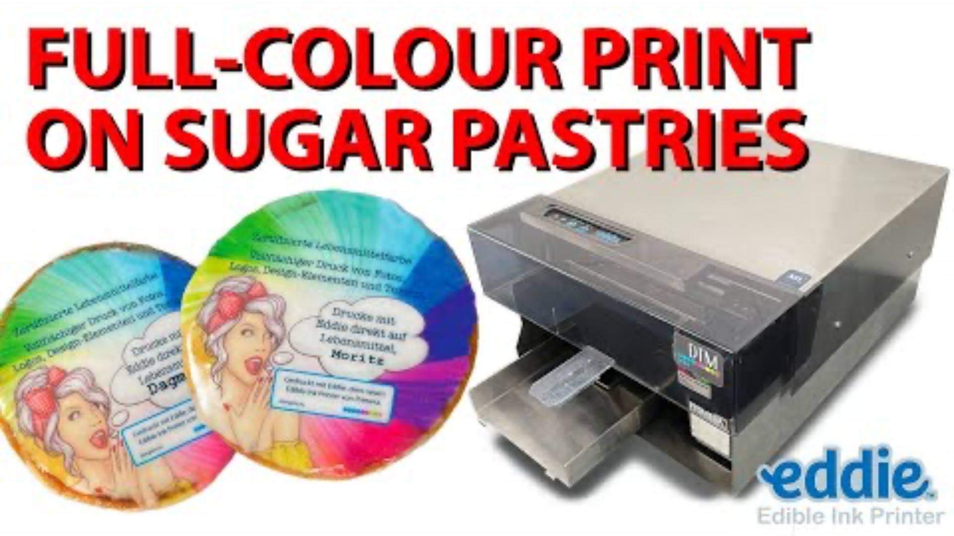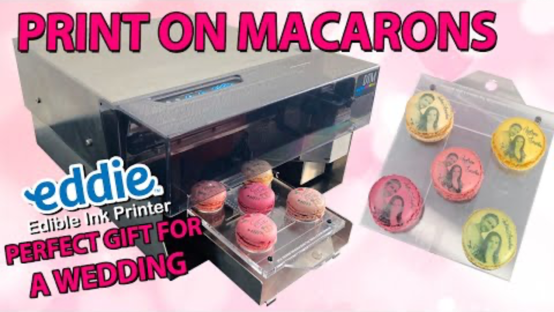 Drucken Sie Fotos, Logos und Grafiken mit Eddie® The Edible Ink Printer direkt auf Kekse, Macarons, Fondant und anderen Süßigkeiten und Backwaren. Druckt bis zu 300 Stück pro Stunde. Gewerbliche Qualität. Vollständig zertifiziert.