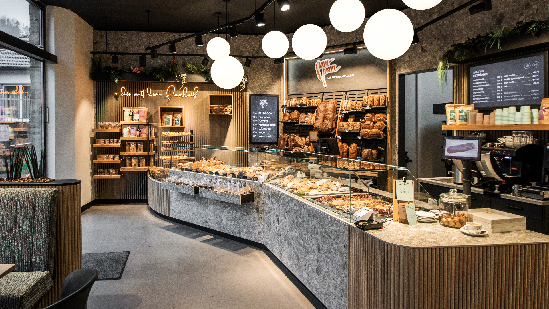 Wir präsentieren durchdachte Ladenbaukonzepte, die Design, Technik und Wirtschaftlichkeit perfekt vereinen. Unsere innovative Thekenanlage & Brotwand 2.0 optimieren sowohl Präsentation als auch Abläufe. Digitale Lösungen steigern die Effizienz und entlasten Ihr Personal. Unser exklusives Sitzbereichkonzept bietet höchsten Komfort und ästhetische Highlights, die das Einkaufserlebnis Ihrer Kunden bereichern.