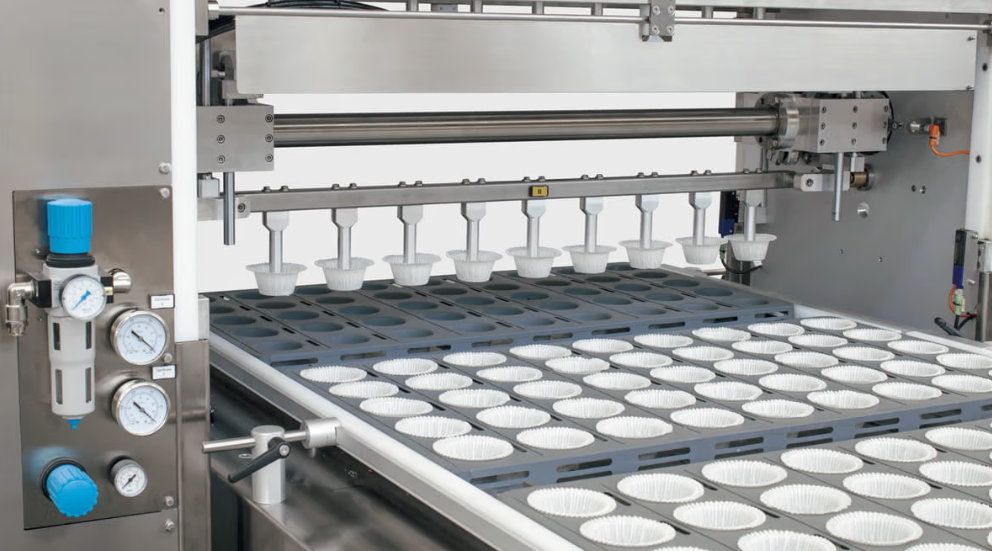 Die Becherentstapler von GEA automatisieren die präzise Platzierung von Papierbechern, Aluminiumfolien und Kunststoffbehältern. Steigern Sie die Effizienz in der Produktion von Cupcakes, Kuchen und Torten durch hohe Geschwindigkeit, Vielseitigkeit und nahtlose Systemintegration.