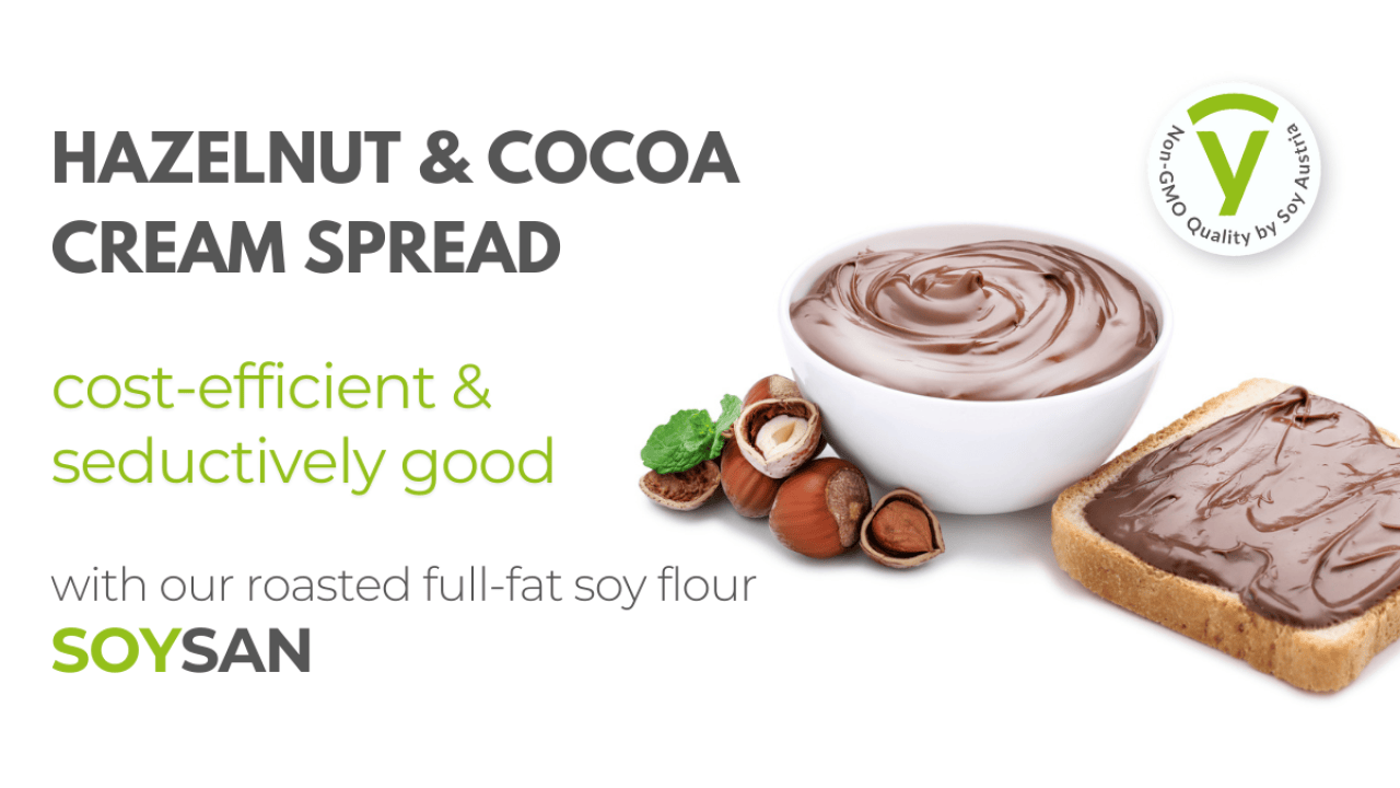 SOY AUSTRIA kann kostenoptimierte Rezepte anbieten, ohne Kompromisse bei Geschmack und Textur einzugehen. Dank unseres gerösteten Vollfett-Sojamehls SOYSAN können wir den Haselnussanteil reduzieren und gleichzeitig den vollen nussigen Geschmack und die samtige, streichfähige Textur beibehalten.