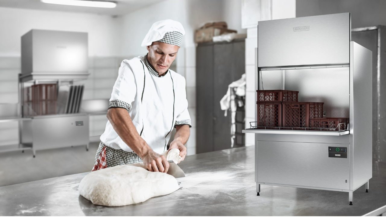 Die Universalspülmaschine UX reinigt Töpfe, Schwarzgeschirr, Bleche, Kisten und Körbe und sorgt für ein perfektes Spülergebnis. Außerdem können 4 Bäckerkörbe in nur einem Spülgang gereinigt werden.