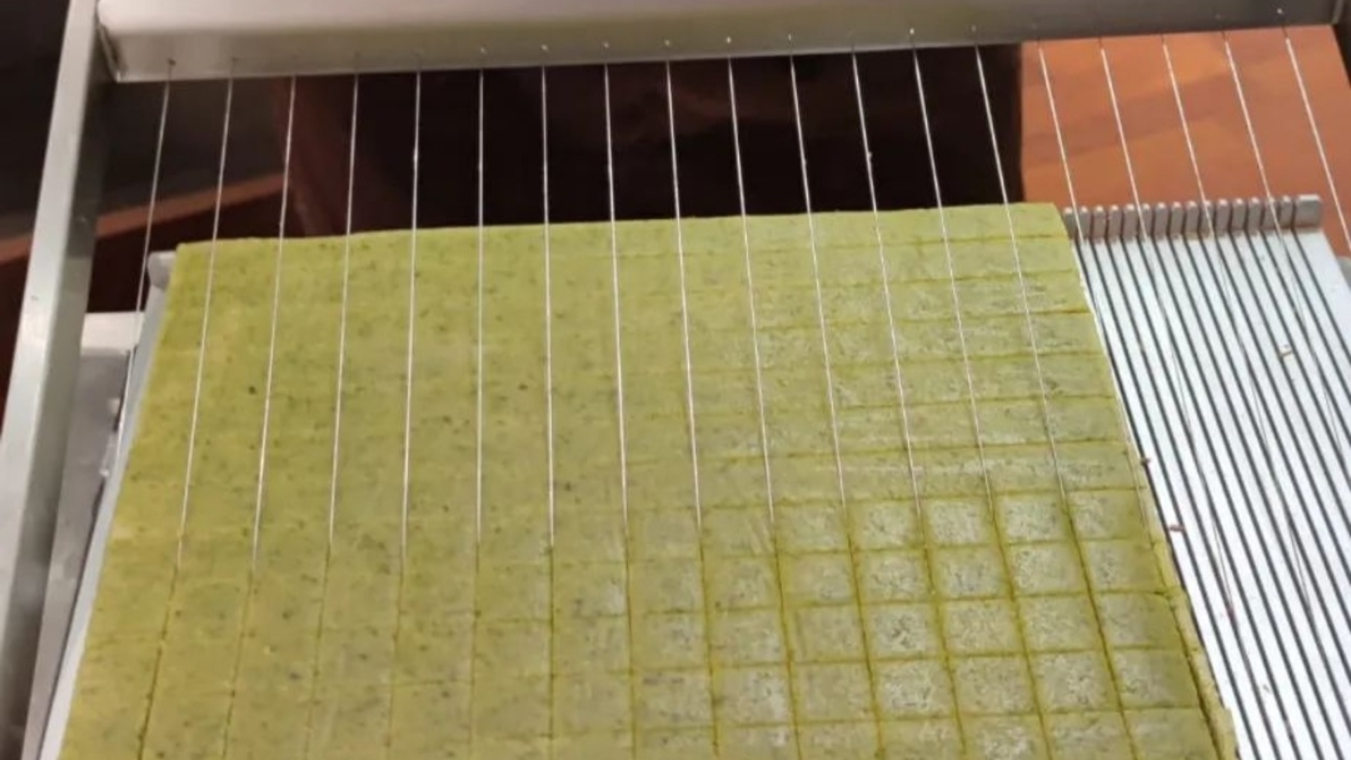 eignet sich hervorragend, um Pralinenmassen, Fettmassen, Butter, Gianduja, Marzipan, Fondantkaramel, Ganache, Geleemassen, Petit Fours, Schnittpralinen u.ä exakt zu Quadraten, Rechtecken und Rauten zu schneiden. Die zu zerschneidende Pralinenmasse-Platte von 360 x 360 mm erhält man durch Ausrollen zwischen Schienen oder durch Ausgießen in Gießrahmen oder Gießblechen, die wir auch nach Ihren Maßen anfertigen.