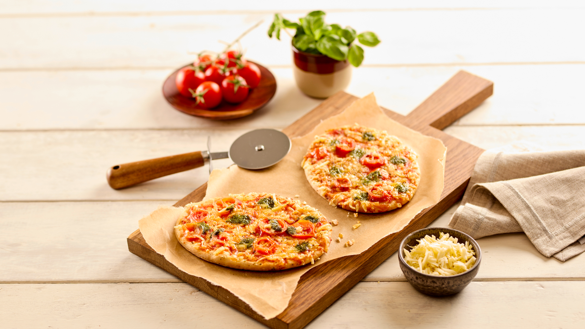 Der neue vegane Pizza-Snack Margherita mit Basilikum-Topping ist DIE köstliche Art Pizza on-the-go zu genießen und neue Zielgruppen zu erreichen. 100% Geschmack ohne Kompromisse!