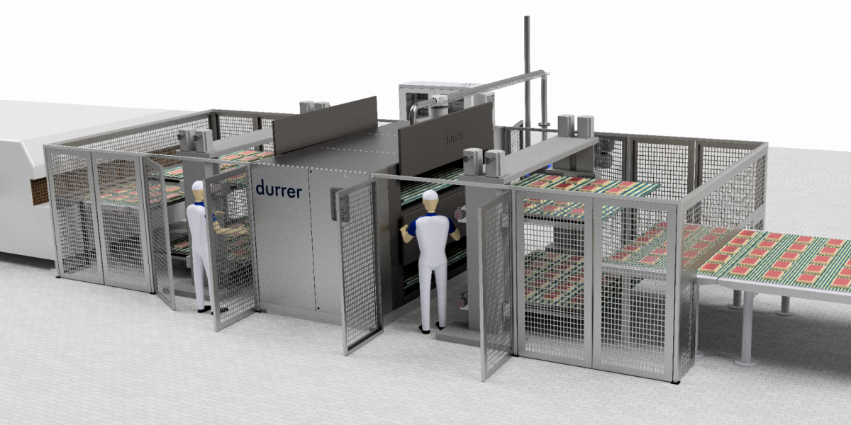 - Kontinuierliches System: Backofen – Förderband – Kühlkammer in einem Durchgang