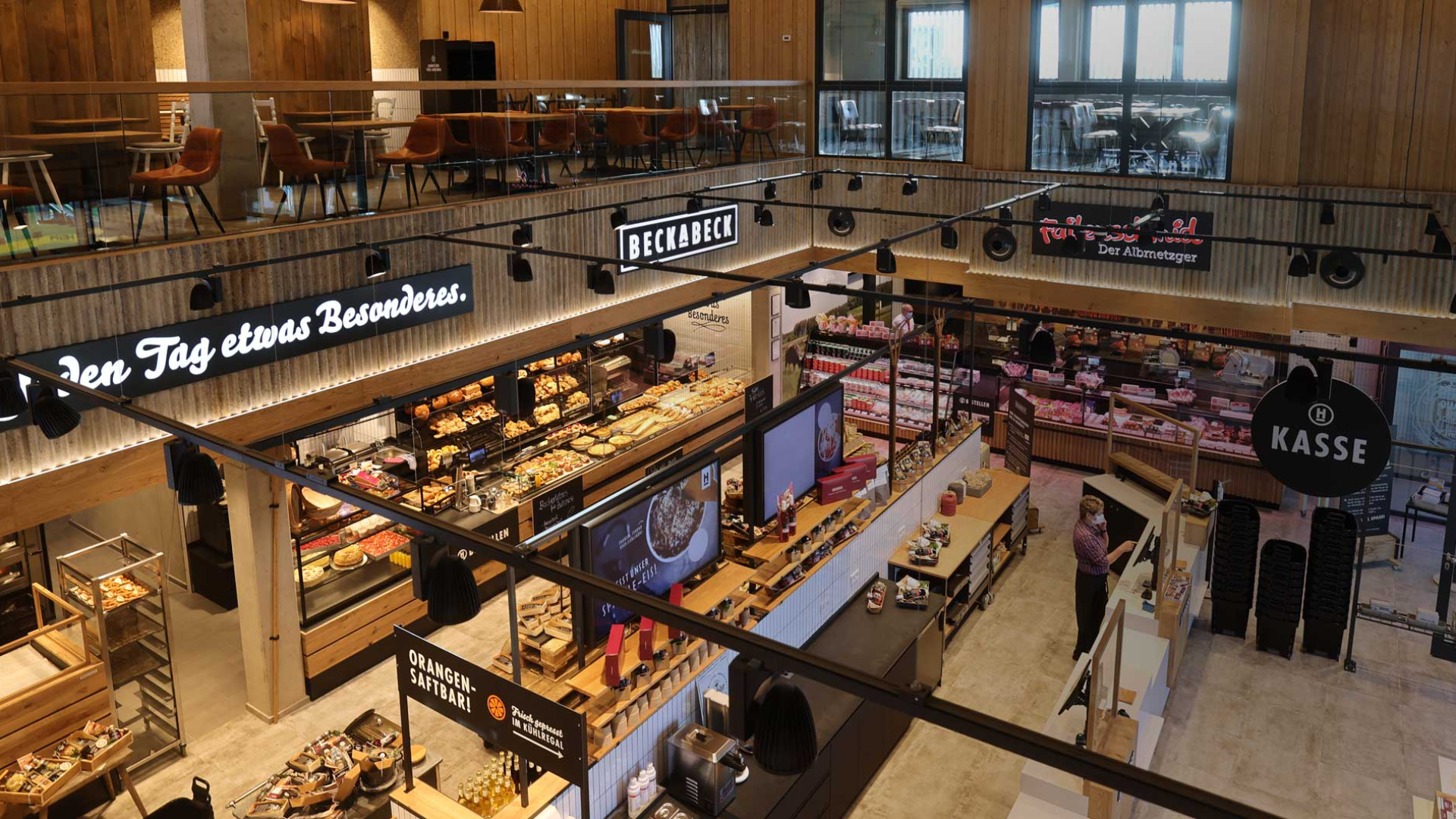 H-Albzeit: Der Name ist Programm! Das Konzept verknüpft erlebbare Regionalität mit den Anforderungen an einen hochfrequenten Standort. Die Kernkompetenz des Betreibers BeckaBeck ist mit allen Sinnen zu erleben. Vor den Augen der Kunden werden regelmäßig schwäbische Brezeln geschlungen, die Brötchenspezialität Beckis und die schwäbischen Seelen in den WIESHEU Etagenbackofen Ebo geschoben.