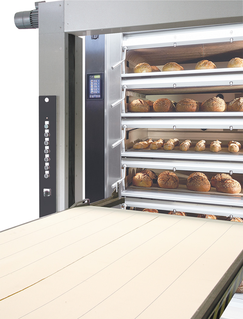 - Effizient und sparsam als stationäre Beschickungs- und Ausbackhilfe vor einem Etagenofen