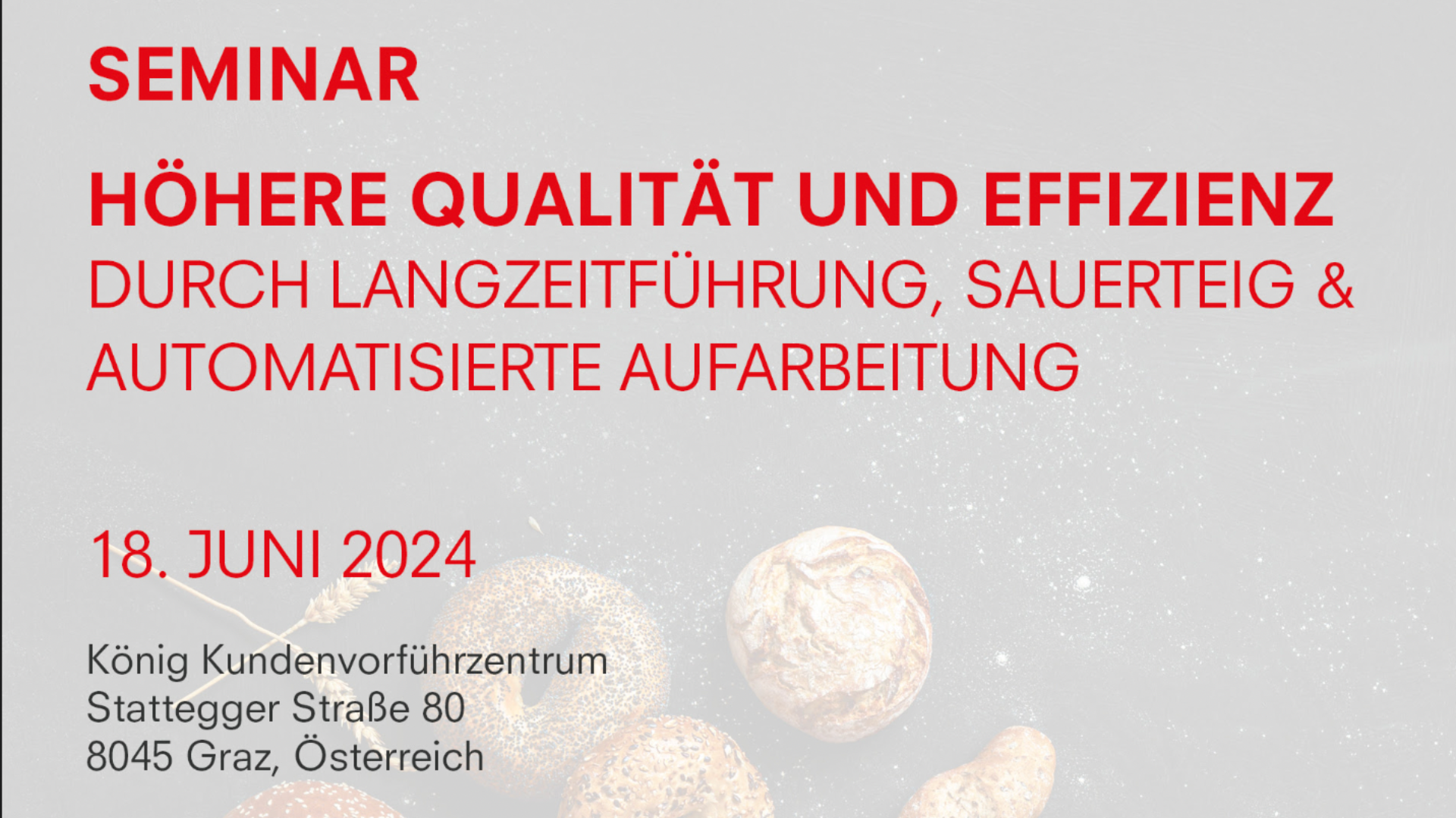 Nutzen Sie die Gelegenheit, Ihr Backhandwerk auf das nächste Level zu heben. Melden Sie sich jetzt für das Fachseminar am 18. Juni 2024 in Graz an und profitieren Sie vom Frühbucherpreis. Die Plätze sind begrenzt – sichern Sie sich Ihren Zugang zu exklusivem Wissen und Praxistipps.