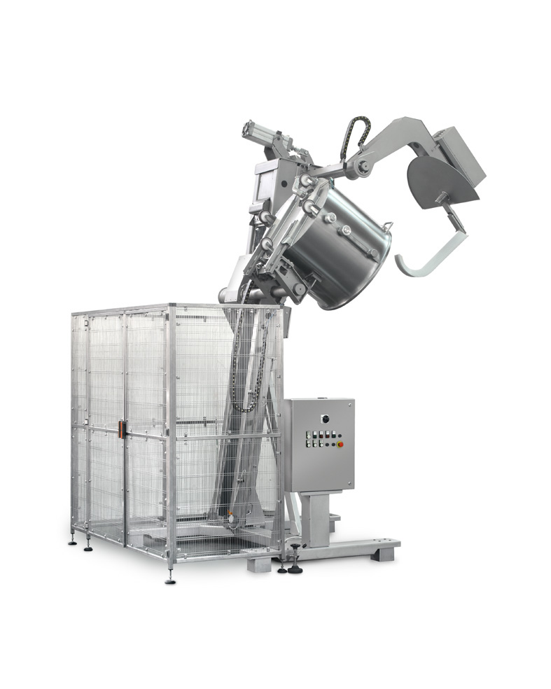 Some tippers and tilters can be equipped with bowl bottom shaped scraping arms made to give optimal results in emptying the bowl.