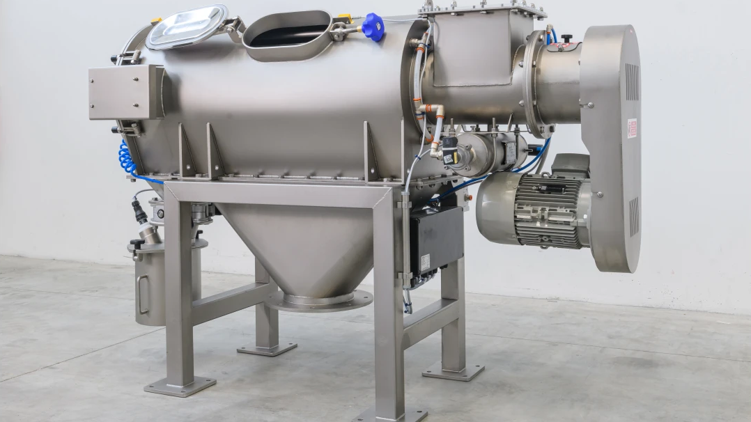 The product, fed by a metering or pneumatic conveying element, is introduced into the tumbler through an auger which regulates the flow towards the sieving chamber. A rotating shaft creates a centric force that spreads the product around the walls of the cylindric sieve.