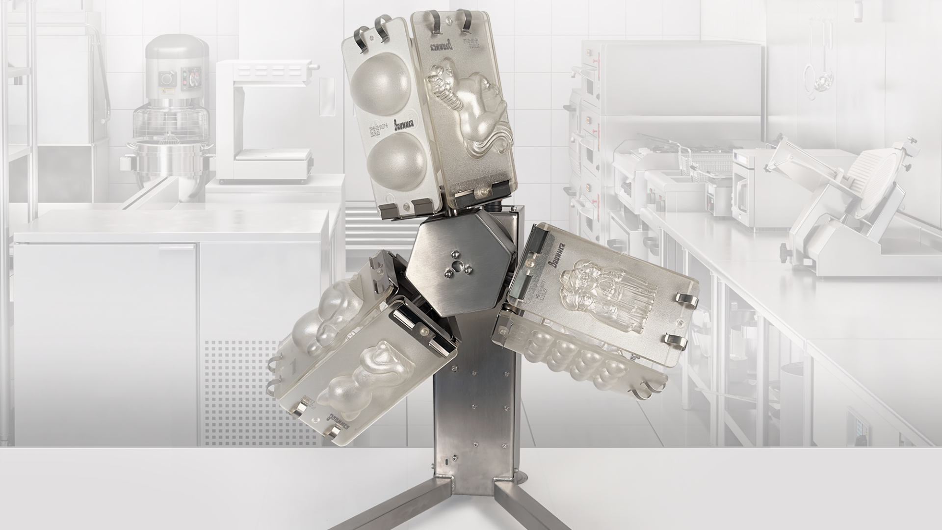 The desk spinner "Mini Spin" is the smallest and most affordable system for producing chocolate hollow figurines. The small spinner was developed to help every chocolate shop reach its growth potential. Production runs as if by itself.