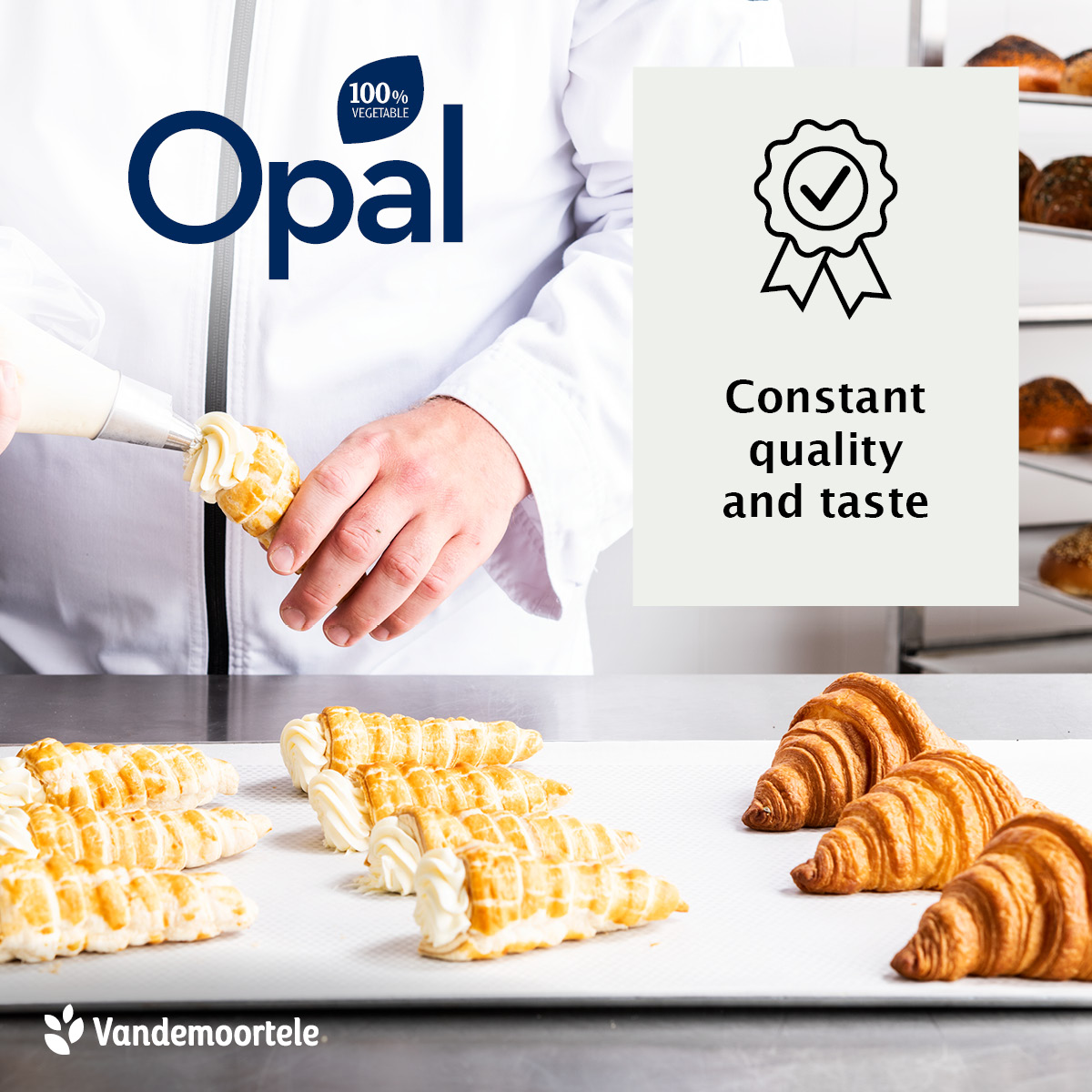 Looking for a reliable partner by your side? OPAL is a performant, 100% plant-based margarine range made for every baker. Whether you’re doing smooth creams, rich cakes, delicious and airy viennoiserie or delicate puff pastry, OPAL delivers perfectly on the performance, flavour and ease of use.