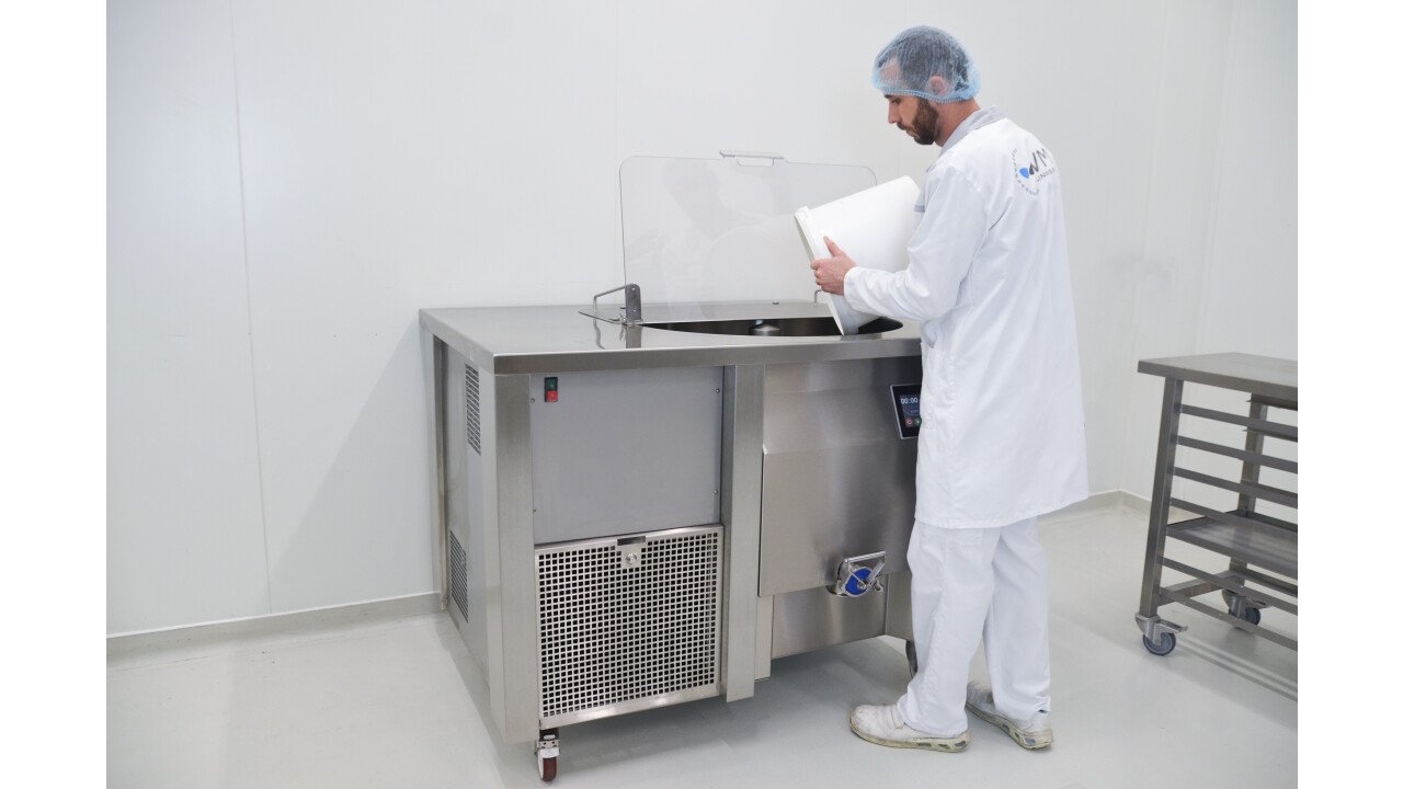 - 300-Liter-Edelstahlkessel für die Herstellung von bis zu 20 kg halb-pastösem Vorteig.