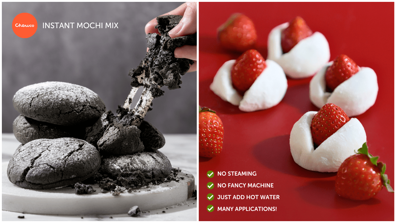 Die Instant-Mochi-Mischung von Chewco macht die Zubereitung von Mochi einfach und ist damit ideal für professionelle Bäckerinnen und Bäcker, die effizient sein wollen, ohne Kompromisse beim Geschmack einzugehen.