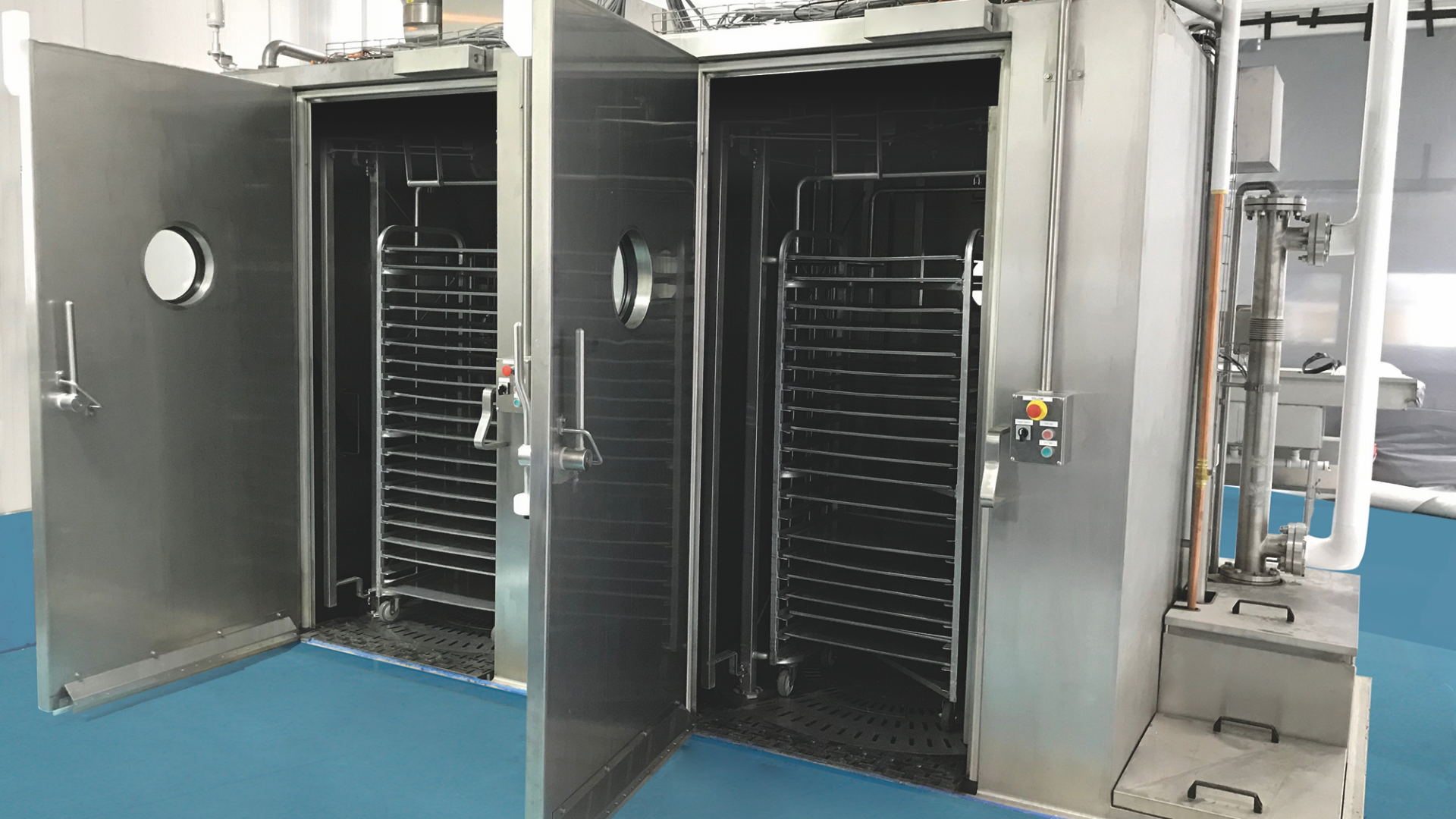 Automatische Wagenwaschanlagen, die nach Maß angefertigt werden. Diese vielseitigen Anlagen garantieren beim Waschen und Desinfizieren von Wagen, Bodengestellen oder an Förderanlagen befestigten Hängegestellen effiziente Ergebnisse nach höchsten Hygienestandards; sie eignen sich außerdem für die Behandlung von Geräten auf Wagen.