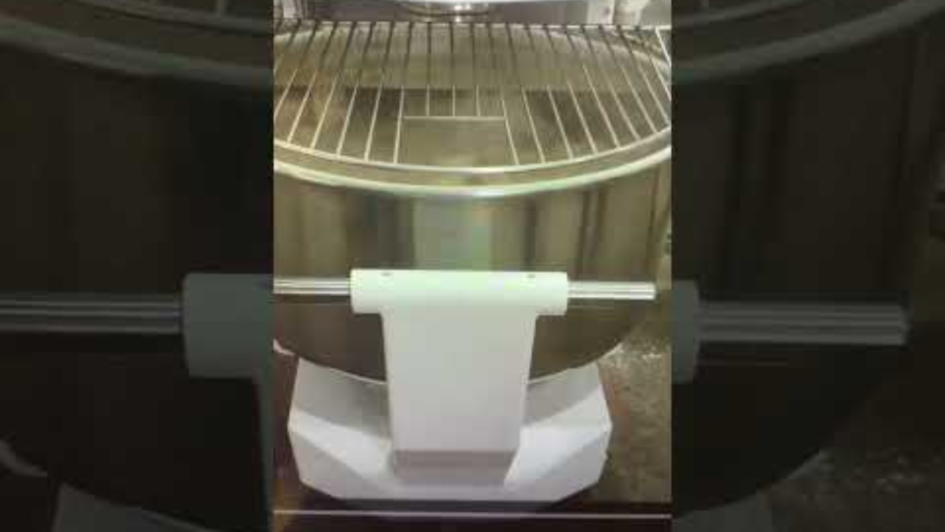 Bei dem Spiralkneter ASP-200 für 200 kilos Teig befindet sich der Kessel auf einem ausfahrbarem Wagen, der am Ende des Knetvorgangs von der Maschine automatisch ausgekoppelt wird. Er kann so weiter zur Herstellungsanlage transportiert werden.
