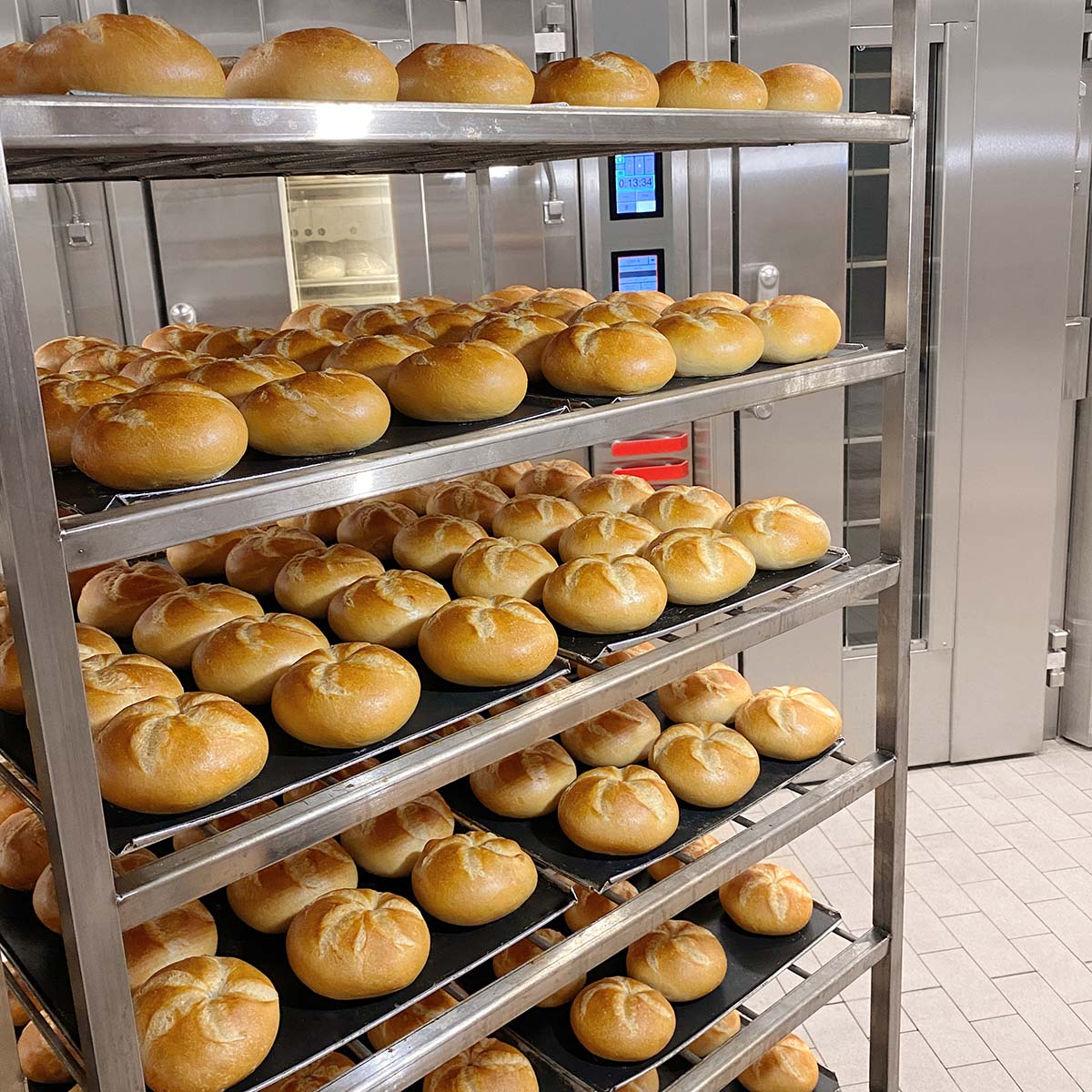 Im HEUFT WAGENOFEN steckt das Know-how von über 30 Jahren engagierter Forschungs- und Entwicklungsarbeit. Der WAGENOFEN punktet konstruktiv als ideale Synthese aus Stikken- und Etagenofen. Er setzt die Maßstäbe, wenn Systeme mit rollender Beschickung gefragt sind. Die kurzen Aufheizzeiten des Thermo-Oel Wagenofens ermöglichen ein wirtschaftliches Backen Schuss auf Schuss. Auch das Nachschieben von Backwaren funktioniert problemlos. Die ausgezeichnete Wärmespeicherkapazität nimmt Unterbrechungen gutmütig hin und setzt den Backprozess ohne Qualitätseinbußen fort. Backen direkt auf Stein, am besten blitzschnell mit geringer körperlicher Belastung. Und auch das funktioniert: Mit unserer rein mechanisch zu bedienenden Beschickungshilfe in unter 60 Sekunden – ohne ins Schwitzen zu kommen. Durch den optional einfahrbaren patentierten Steinplattenwagen verwandelt sich der HEUFT WAGENOFEN in einen waschechten Etagenofen.
