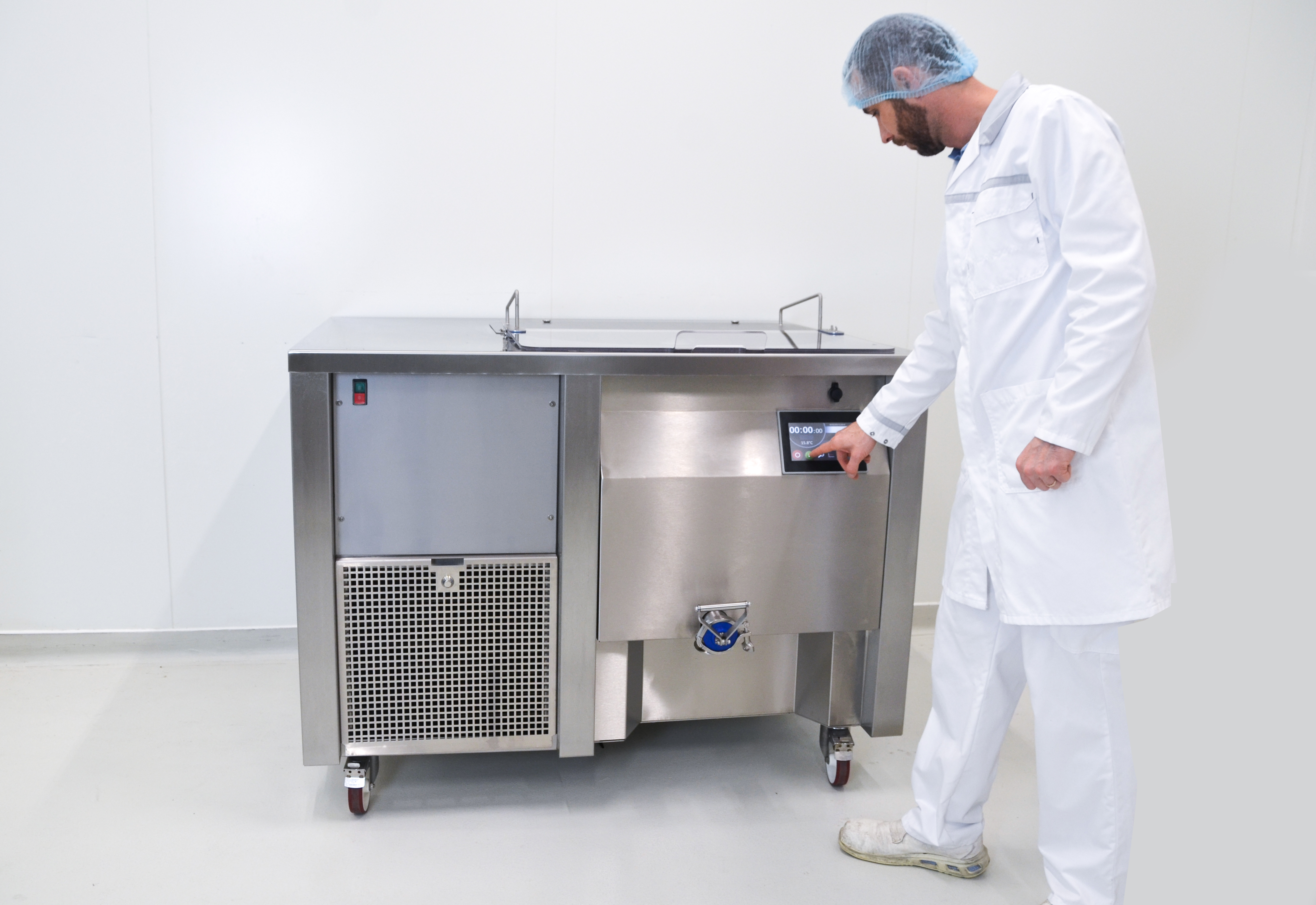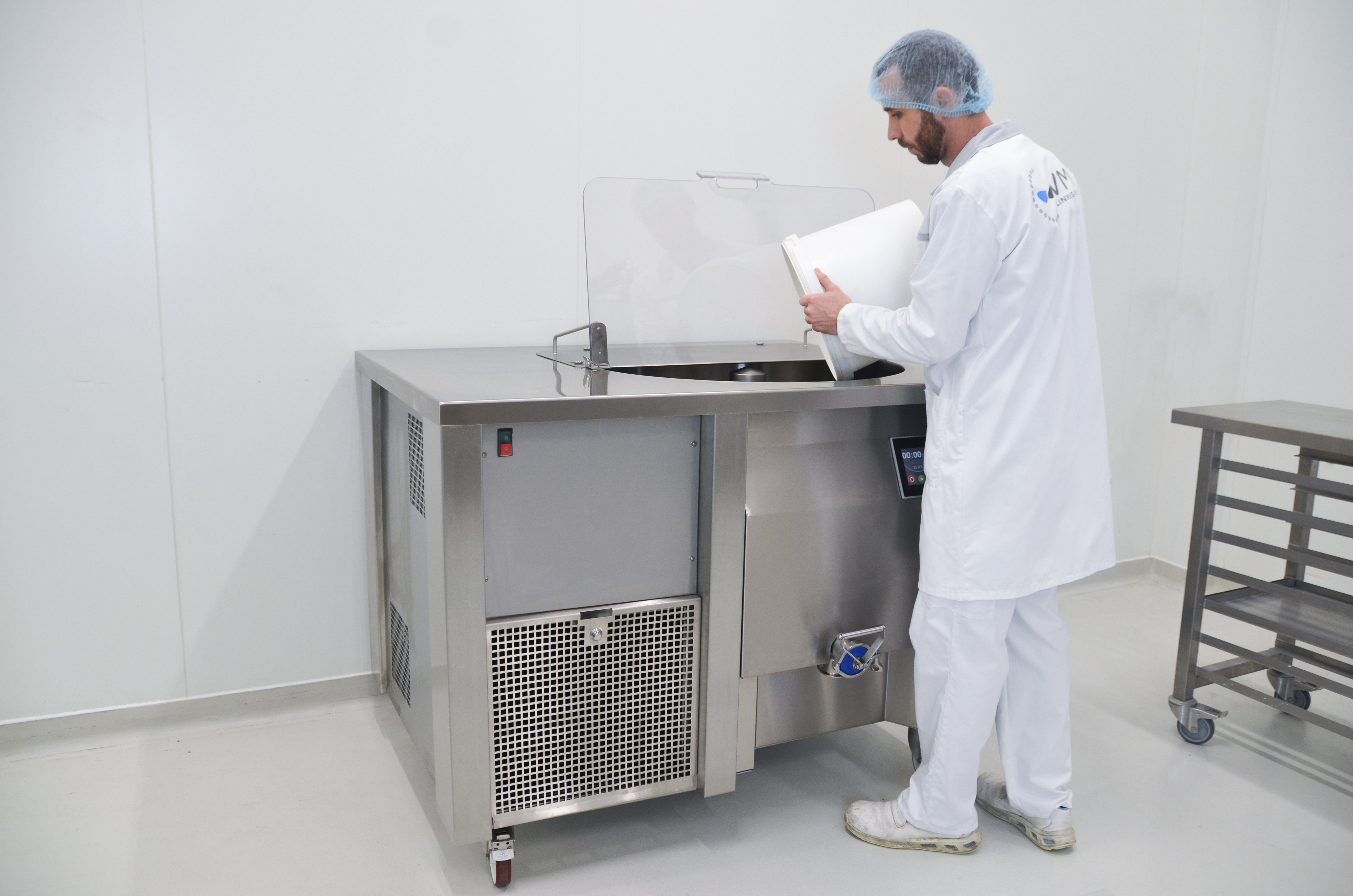 • Its design has been thought out to optimize the comfort of the workstation: mobile machine on wheels with an adapted bowl height to facilitate daily work. It has a two-part see-through cover that allows you to keep an eye on the mixture.