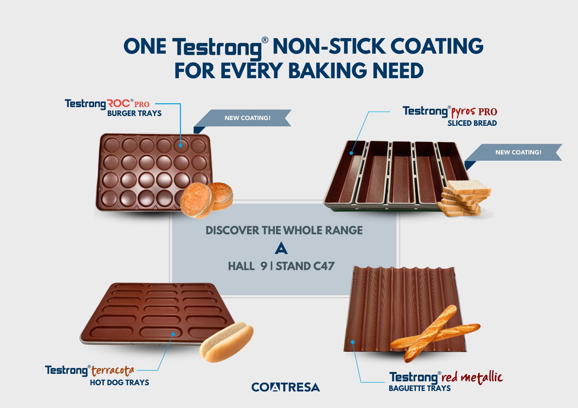 With over 40 years of experience behind us, at COATRESA we offer non-stick coatings tailored to every baking production process. Visit us and discover our range of Testrong® non-stick coatings.